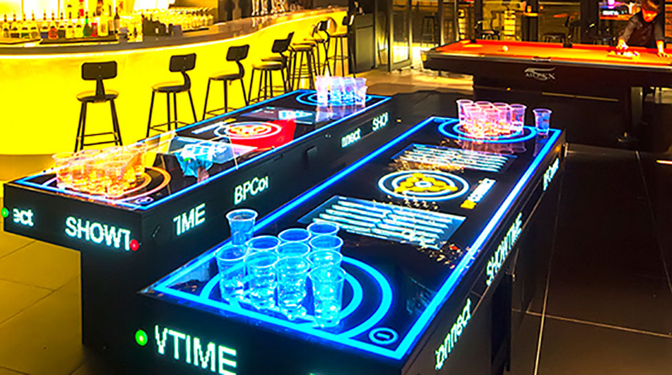 Beer Pong is generally played by teams of two in which each team takes turn throwing a ping pong ball into the other team’s cups. The team that successfully hits all of the opponent’s cups wins the game.